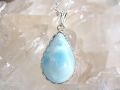 爽やかなブルーの色と白い模様のドロップの形がとても素敵なラリマーのペンダントです