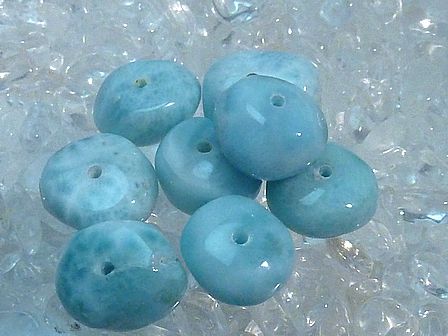 ラリマー 大粒さざれビーズをお買得価格でご提供します! ビーズの穴まわりやビーズの表面に、ラリマー特有の茶褐色のインクルージョン、