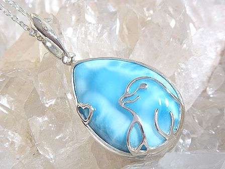 ラリマー & イルカ ペンダント ☆ シルバーチェーン付き! 【 Ryu コレクション】 ☆ 送料無料!